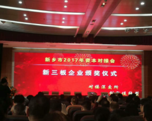 當日下午,分別舉行了2017年新鄉市新三板掛牌企業頒獎儀式、新鄉市百家四板企業集中授牌及簽約儀式,本次活動共達成簽約項目256個,涉及金額335.59億元,取得了豐碩成果。